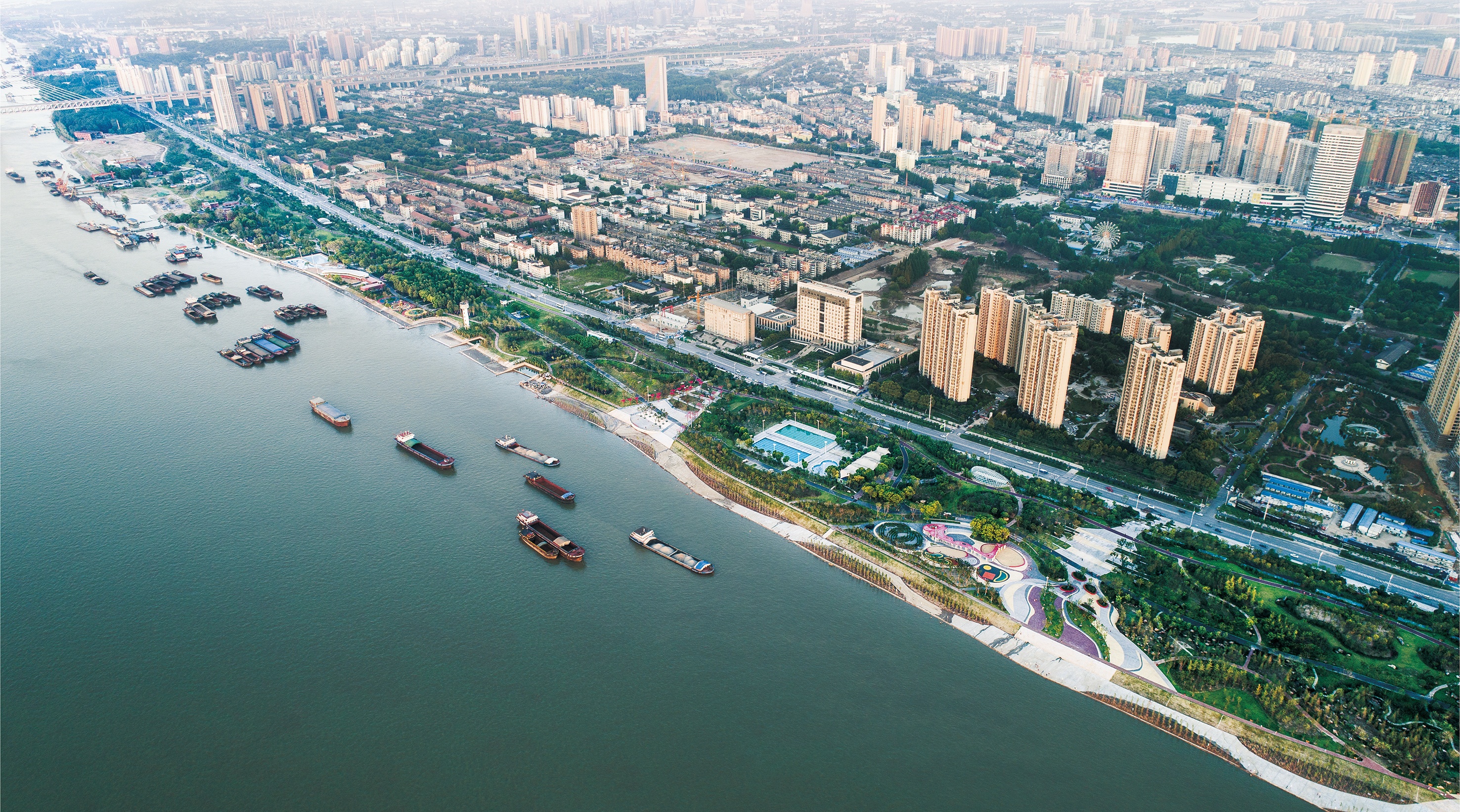 由中國一冶承建的武青堤工程是全國首批海綿城市試點項目之一,是湖北省首個“海綿”江灘和綠化比例最高的江灘,全長7.5公里,總面積135.48萬平方米。中國一冶研發(fā)應(yīng)用“人水和諧多功能城市生態(tài)堤岸建造關(guān)鍵技術(shù)”,首次在長江一級干堤采用“似堤非堤”的微地形手法,打造“城市、江灘、堤防三位一體”的生態(tài)江灘。